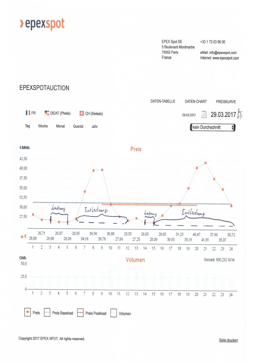 selbst. Sie liegen im Mittel bei: 3,2 – 4,5 ct./kWh. Im Minimum bei -12 ct./kWh (Sie bekommen also Geld geschenkt wenn Sie Strom verbrauchen) und im Maximum 16.ct./kWh. Mit der Energie-Box können Sie nun preiswerten Strom speichern und in teuren Zeiten aus dem Speicher entnehmen und so den teuren Preis ersparen. Das Einsparpotential liegt hier bei ca. 2 – 3,5 ct./kWh im Mittel.